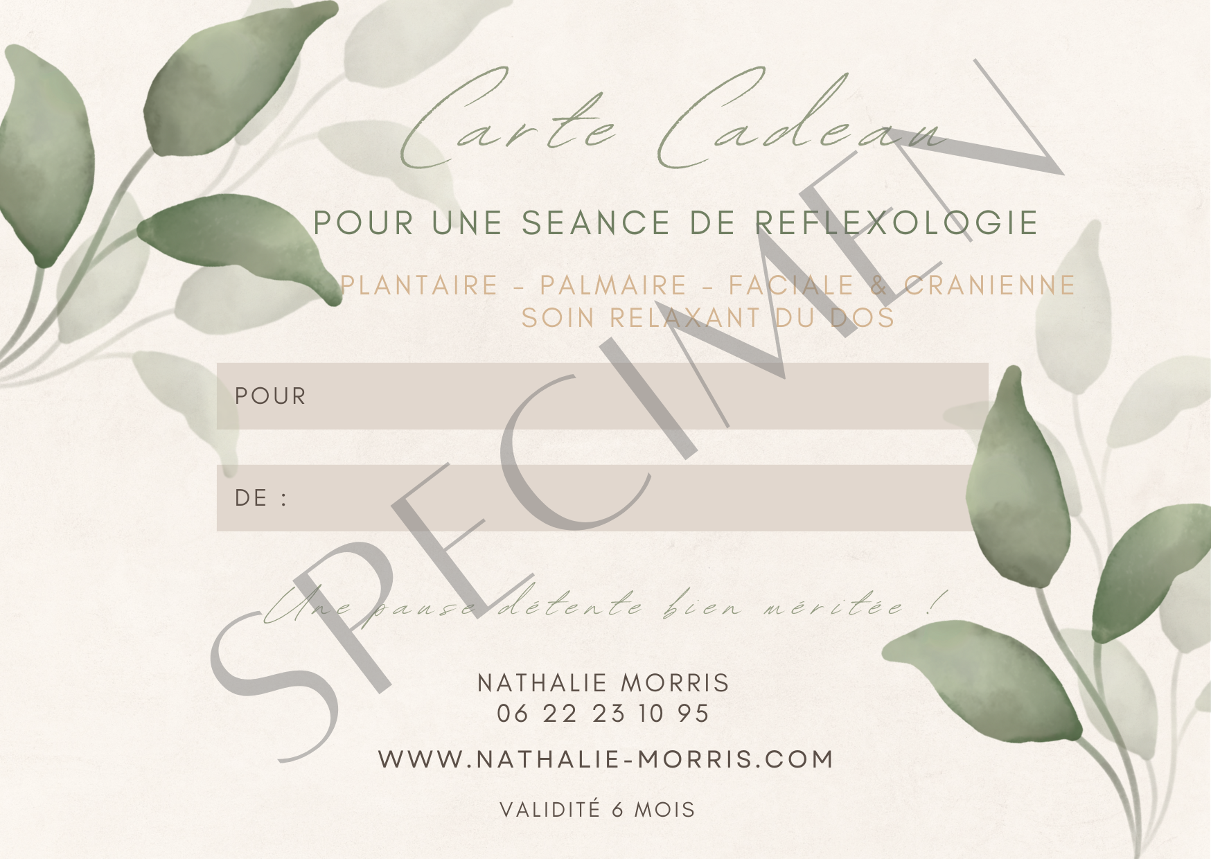 Each gift card gives access to a 60-minute session and the person receiving the gift card can choose between foot, hand, facial & cranial reflexology OR a relaxing back treatment.